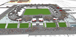 •VISWALK은 보행자 모델링을 통하여 콘서트, 축제, 올림픽게임 등 다중이 밀집되는 이벤트계획 시 보행자 행태 분석 가능